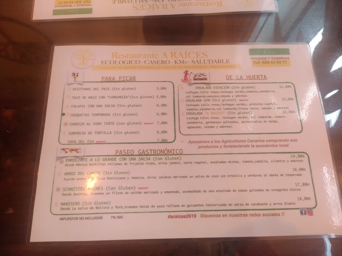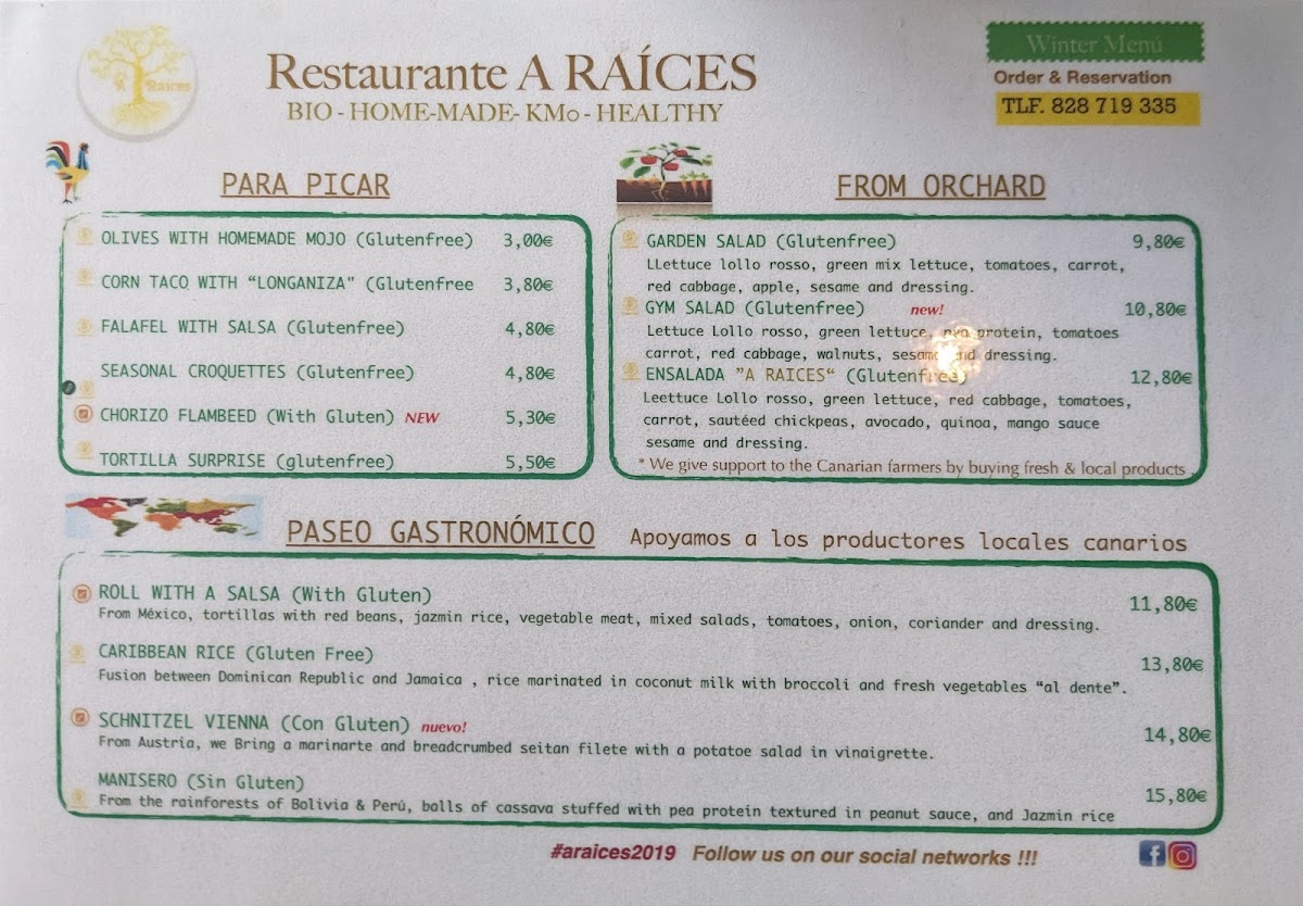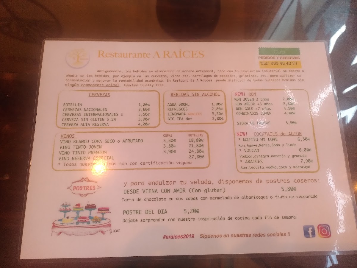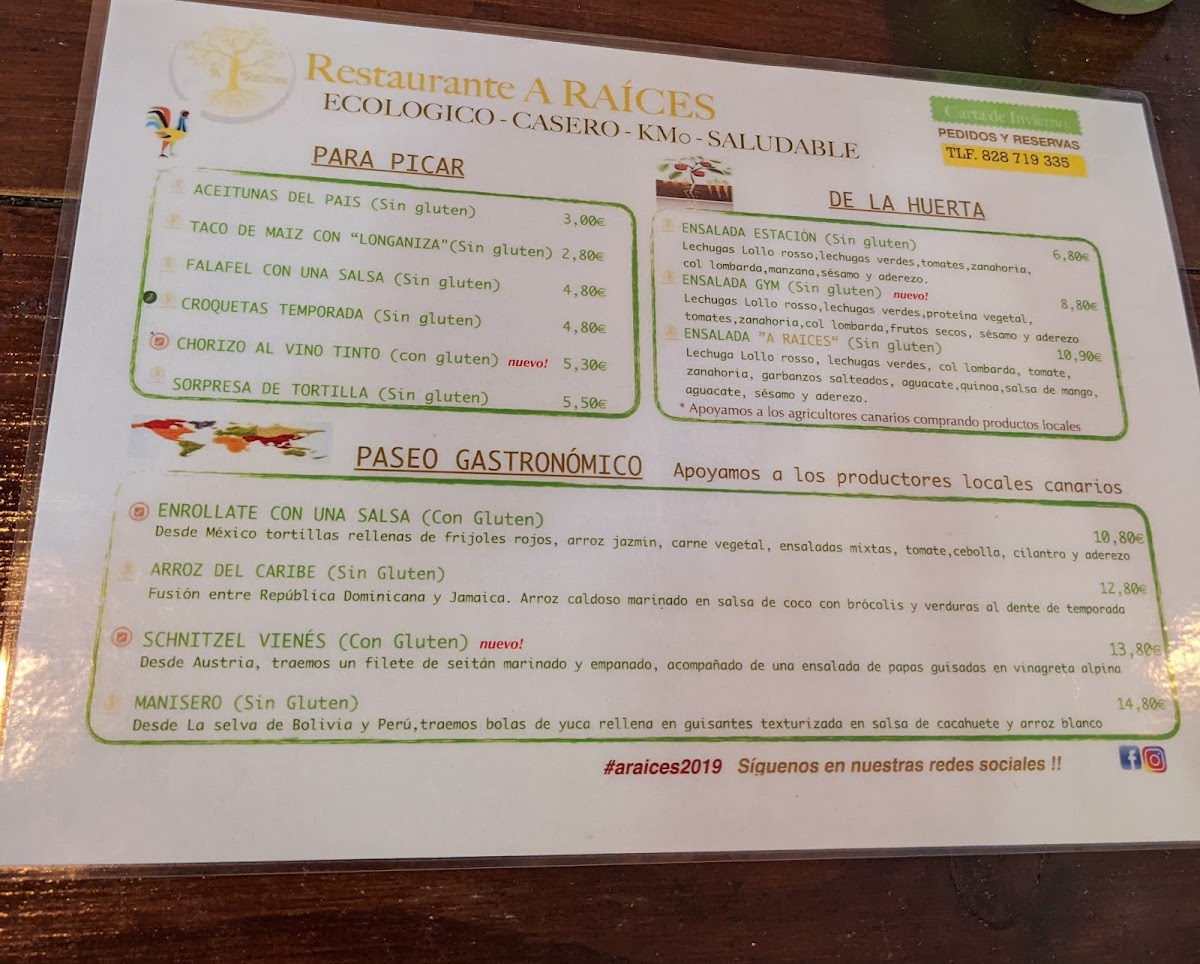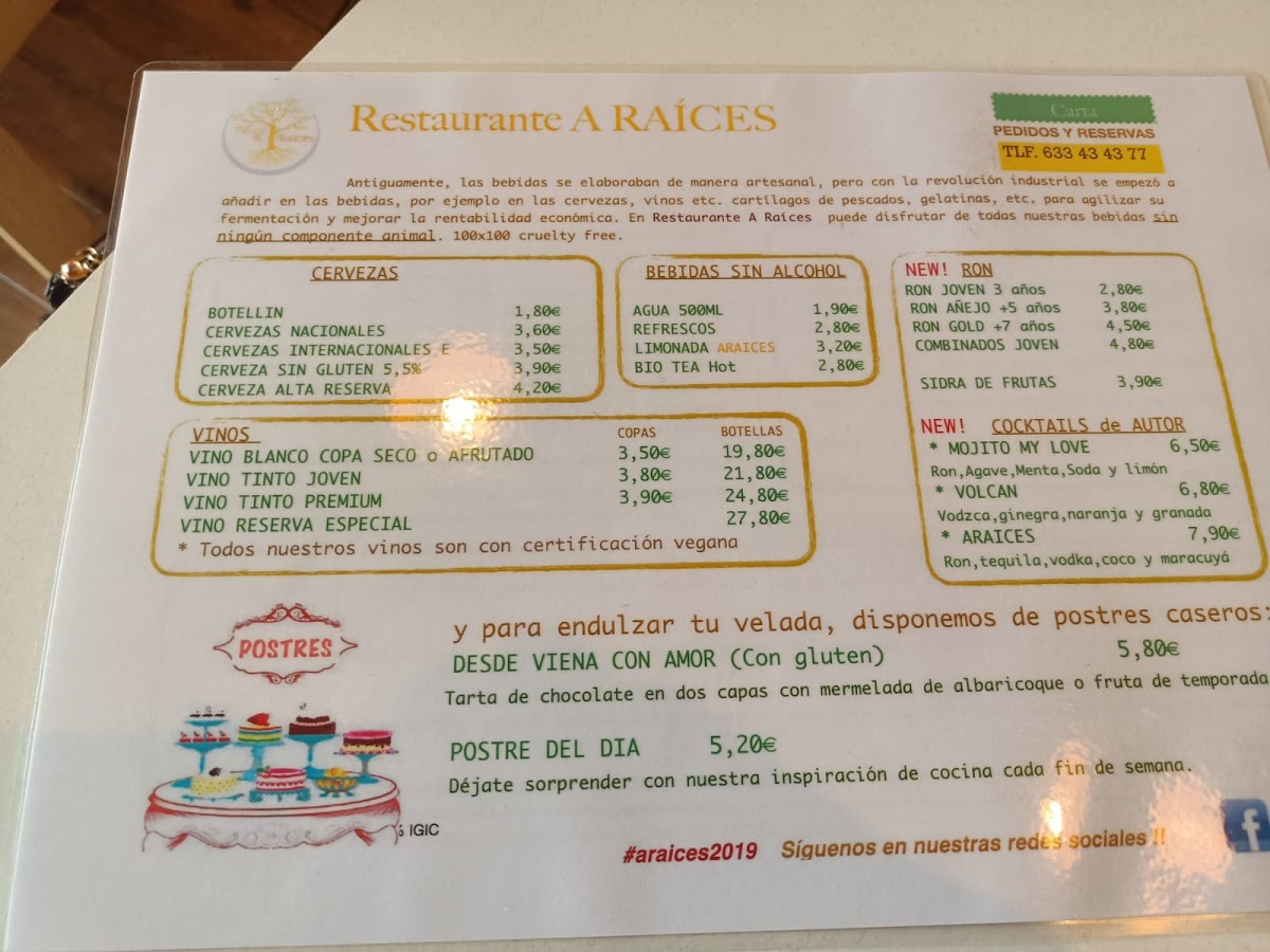 Overall, the menu at A Raíces suits a variety of casual dining moments—whether a midday lunch break, a leisurely dinner, or an intimate catch-up over small plates. The atmosphere encourages a quiet enjoyment of thoughtfully prepared vegan cuisine that respects local tastes while inviting curiosity and comfort.